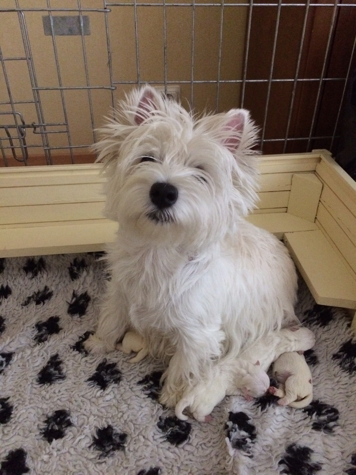 Lissu ylpeä äiti. Lissu proud mother Lissun ensimmäiset pennut. Lissu's first puppies.